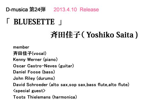 D-musica 第24弾『 BLUESETTE 』斉田佳子( Yoshiko Saita )